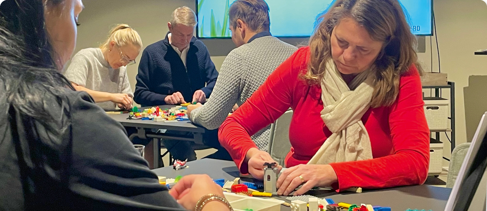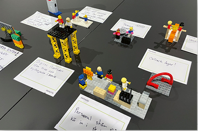 Följa en faciliterad process i verktyget LEGO Serious Play där välformulerade uppdragsfrågor, storytelling och gruppreflektioner möjliggör kunskapsöverföring och öppnar upp kreativitet.